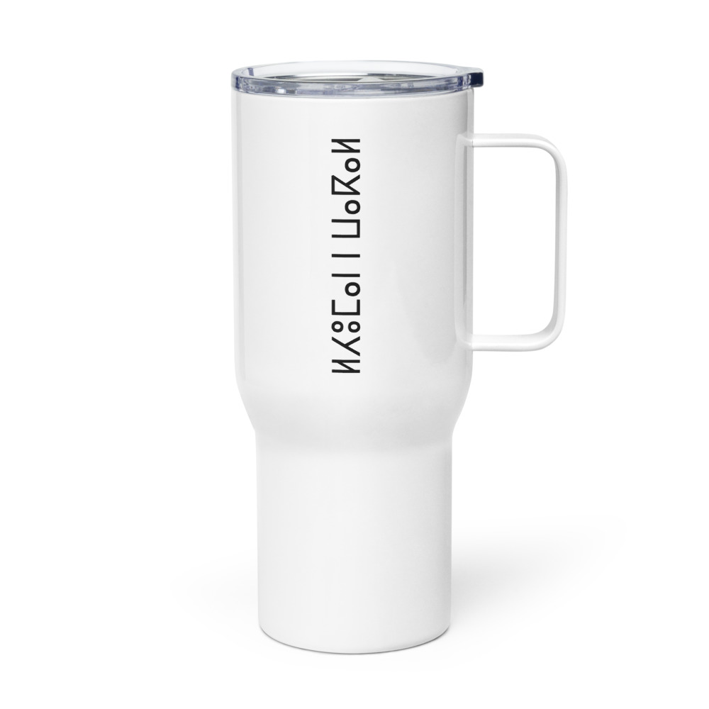 Large White Thermal Travel Mug with Handle-Spill-Resistant Clear Lid